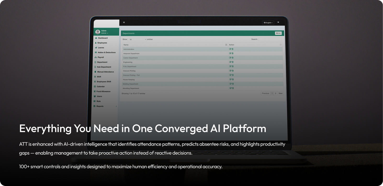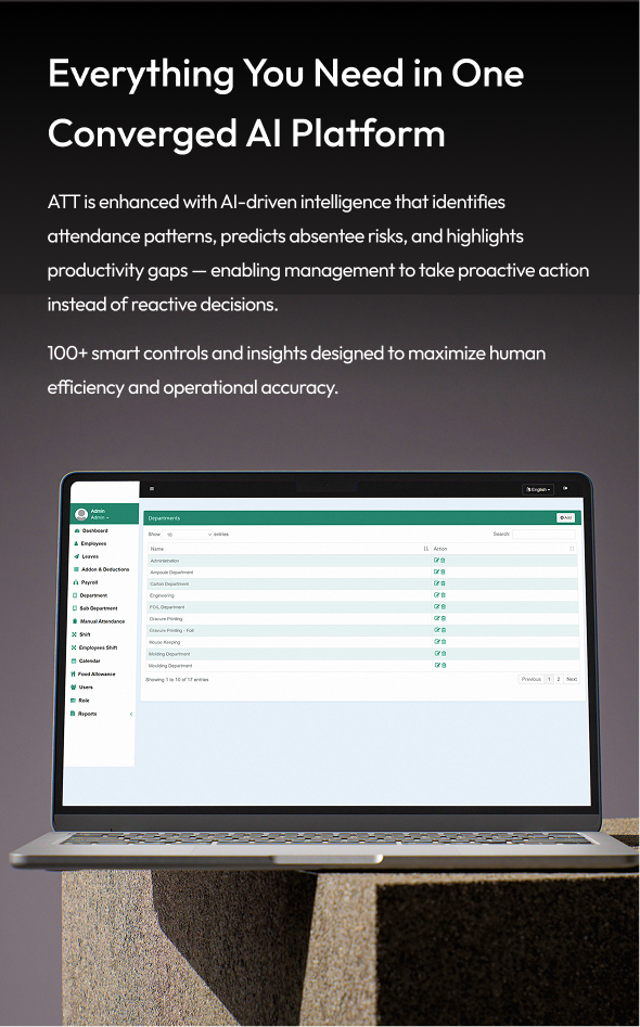 ATT digitizes attendance management by combining real-time tracking, automation, and AI-powered reporting. Whether you manage a corporate workforce, educational institution, healthcare facility, or industrial site, ATT ensures accurate time records, operational discipline, and transparency.