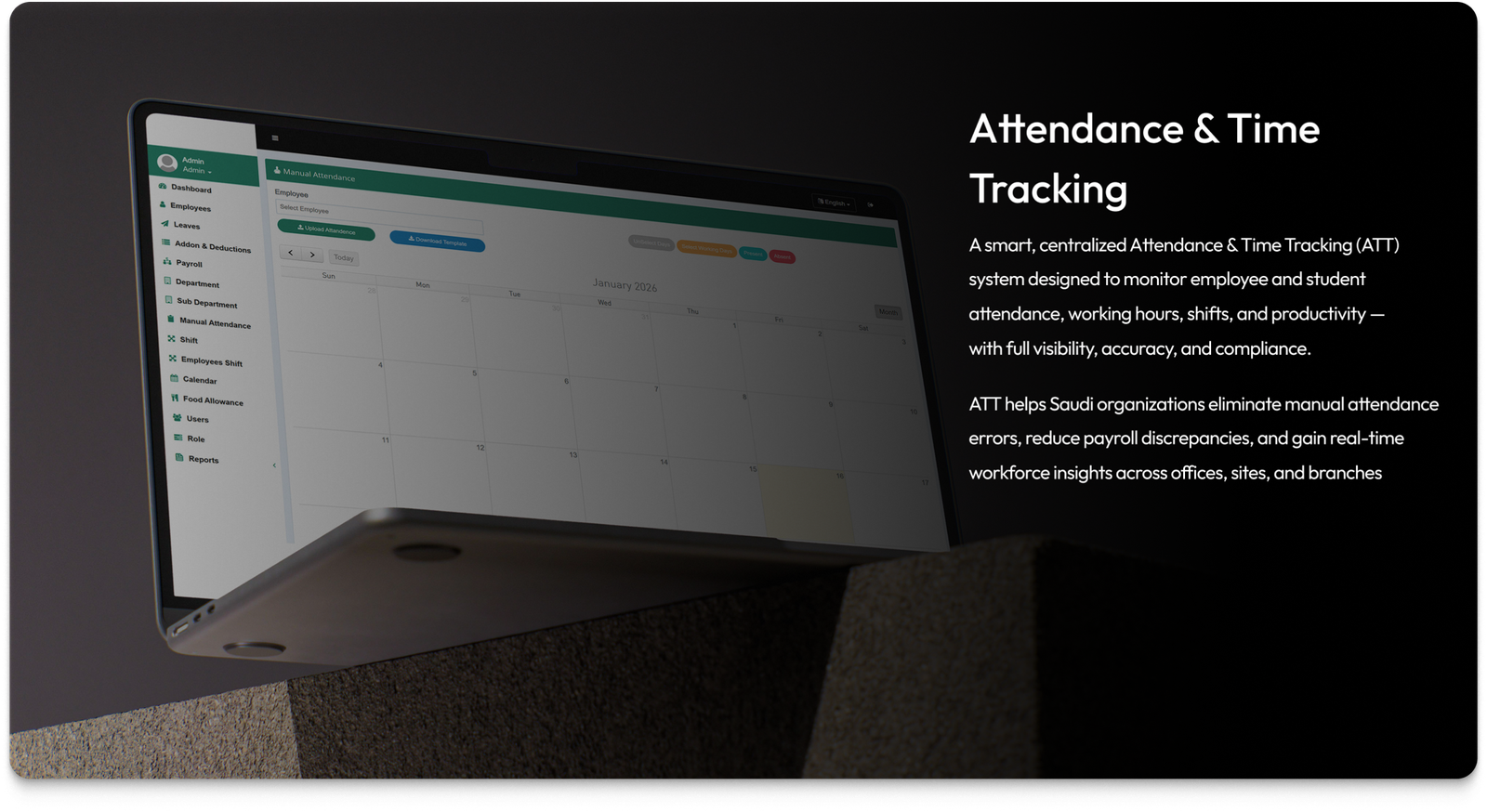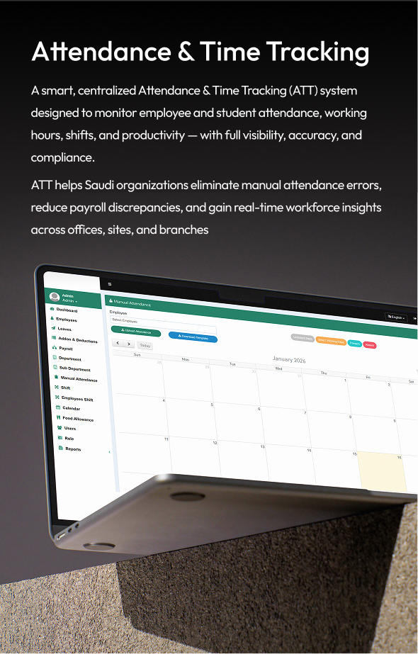 ATT transforms attendance from a manual burden into a strategic operational asset — delivering clarity, control, and compliance for organizations across Saudi Arabia.